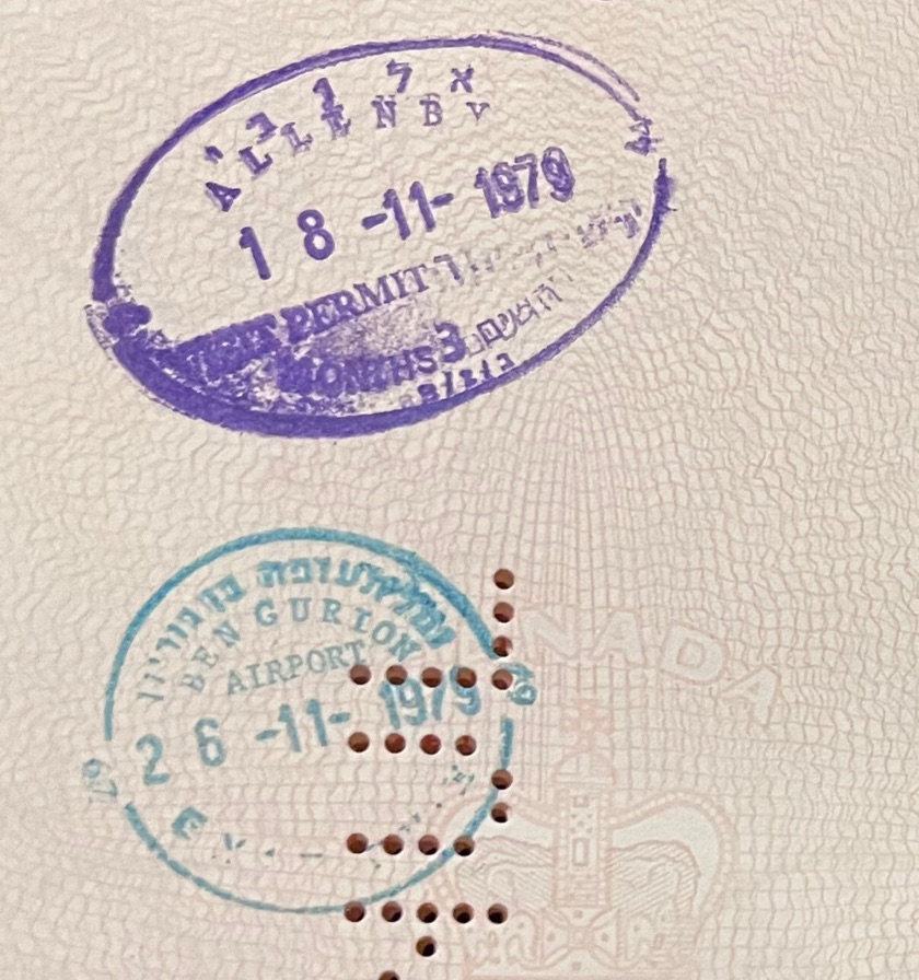 - The stamps indicate entry into and exit from Israel via Ben Gurion Airport.