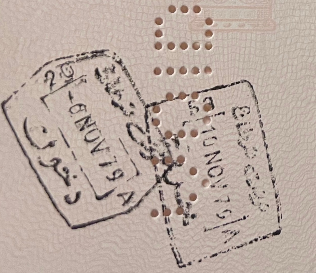 This stamp indicates she entered Qatar on November 6th, 1979 and exited on November 10th, 1979.